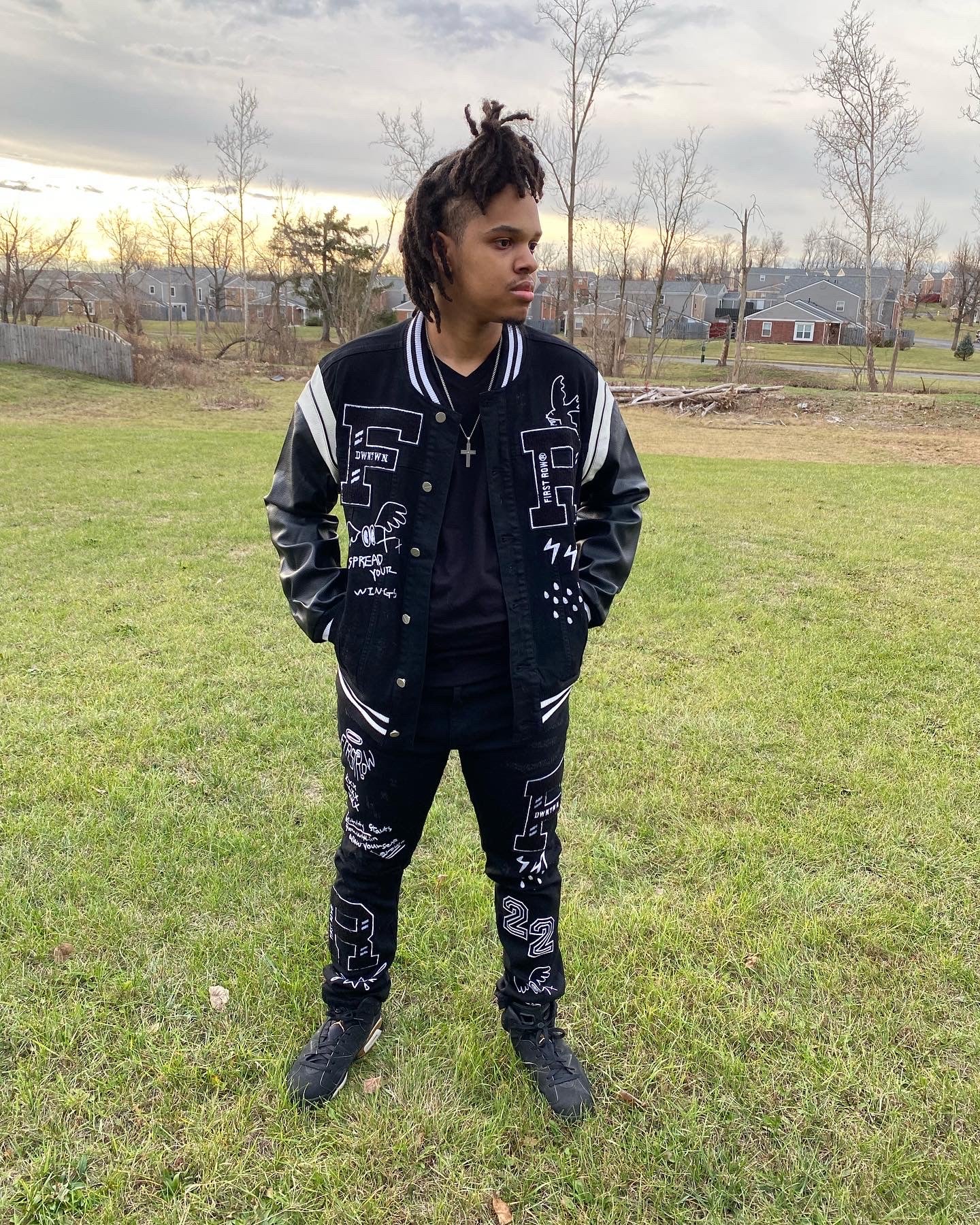 Multi Patch Varsity Black Denim Jacket