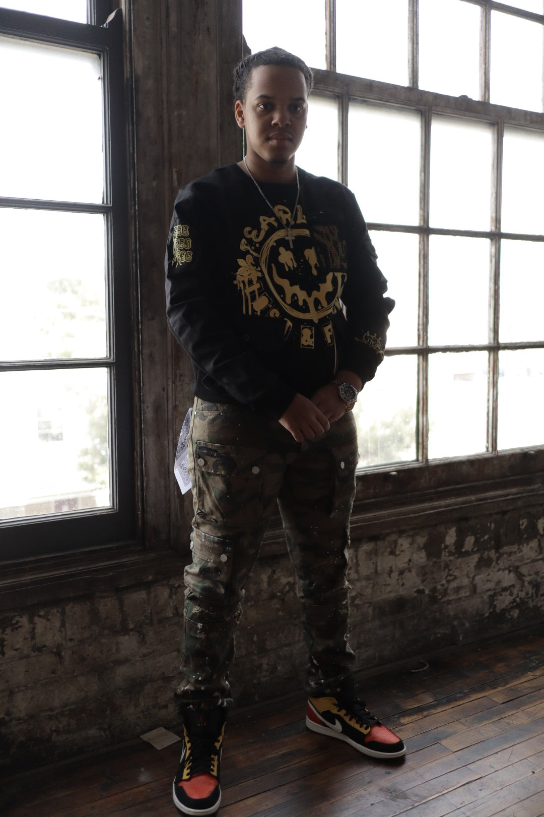 SMEARED FACE UTILITY SWEATSHIRT
